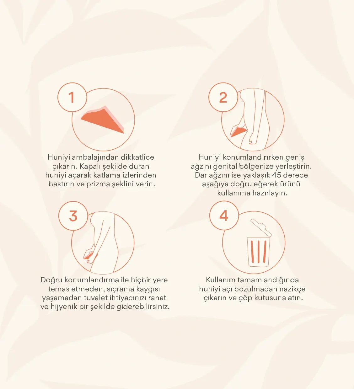 Ayakta pratik kullanım sunan hijyenik huni ile oturma ya da çömelme zorunluluğu olmadan tuvalet ihtiyacını giderebilirsin. Özellikle hijyeninden emin olmadığın tüm ortamlar için ideal. Çantanın vazgeçilmezi olacağına eminiz!